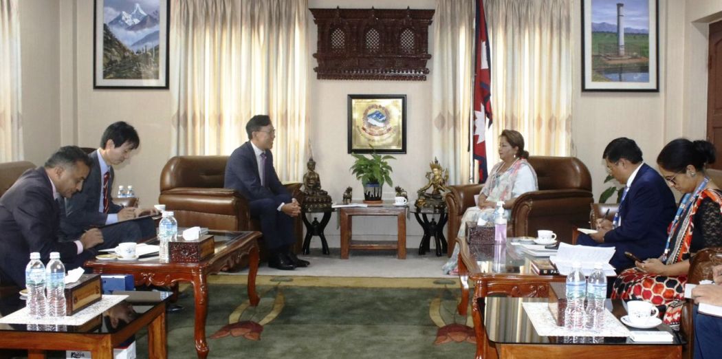 काठमाडौं । परराष्ट्रमन्त्री डा.आरजु राणासँग नेपालका लागि गणतन्त्र कोरियाका राजदूत पार्क थियोङले शिष्टाचार भेट गरेका छन् ।