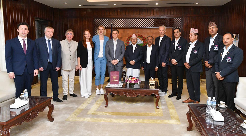 प्रधानमन्त्री निवास बालुवाटारमा आज रुसको महिला भलिबल टोलीसँगको भेटका क्रममा प्रधानमन्त्रीले ओलीले दुई देशबीच सोभियत सङ्घ हुँदादेखि नै रुसबाट नेपालले शिक्षा, यातायात आदि क्षेत्रमा सहयोग पाउँदै आएको उल्लेख गर्दै खेलका लागि रुस एक प्रकारको बादशाह नै भएको बताए ।