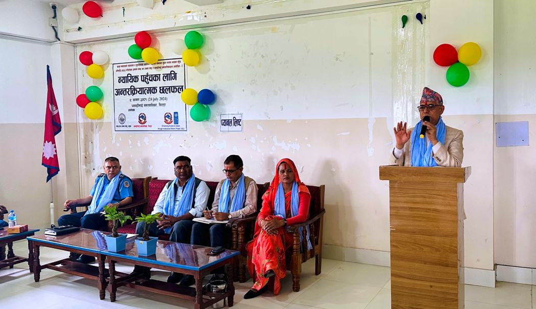 कार्यक्रममा धनगढीमाई नगरपालिकाका प्रमुख शिवशङ्कर महतोले हरेक नागरिकको सर्वसुलभरुपमा न्यायमा पहुँच अभिवृद्धि गरिनुपर्नेमा धारणा राखे । नगरपालिका उपप्रमुख संगिता कुमारी चौधरीले न्यायिक क्षेत्रमा देखिएका समस्या पहिचान गर्न तथा निरुपण गर्न चुनौती रहेको बताइन ।