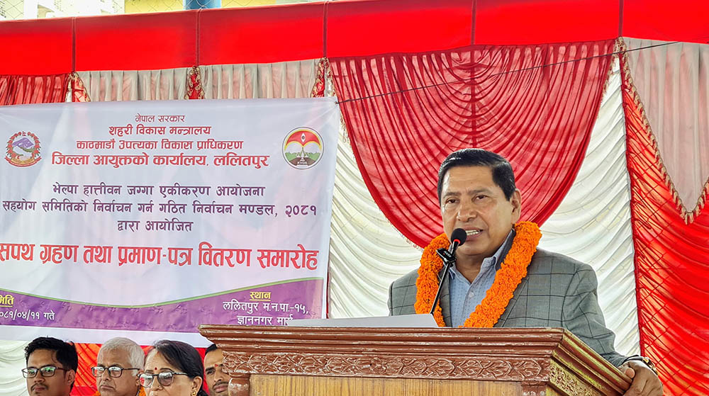 शुक्रबार हात्तीवनस्थित ज्ञाननगर मार्गमा आयोजित 'भेल्पा हात्तीवन जग्गा एकीकरण आयोजना सहयोग समिति'का निर्वाचित पदाधिकारीलाई सपथ गराउने र प्रमाणपत्र वितरण गर्ने समारोहलाई सम्बोधन गर्दै उहाँले सो कुरा बताएका हुन् ।