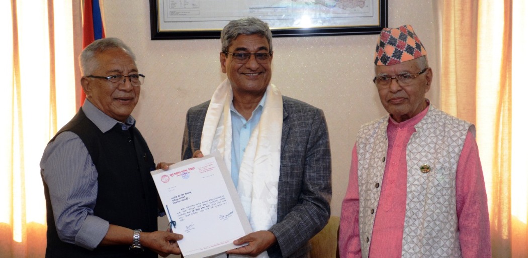 काठमाडौं । गृहमन्त्री रमेश लेखकसँग पूर्वसांसद मञ्चका प्रतिनिधिले भेटवार्ता गरेको छ । आज सिंहदरबारस्थित मन्त्रालयमा भएको भेटमा पूर्वसांसद मञ्चका अध्यक्ष ओमकार श्रेष्ठ नेतृत्वको टोली सहभागी थियो ।