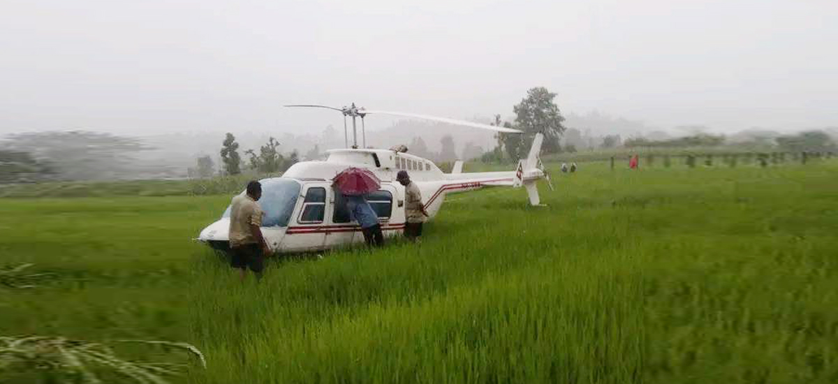 हेलिकोप्टर साढे १२ बजेतिर खेतमा अवतरण गरेको जिल्ला प्रहरी कार्यालय सुर्खेतका प्रमुख प्रहरी उपरीक्षक रुपेश खड्काले बताए । उनका अनुसार अहिले मौसममा सुधार आएपछि हेलिकोप्टर सुर्खेत विमानस्थल ल्याइ पुर्याइएको छ ।