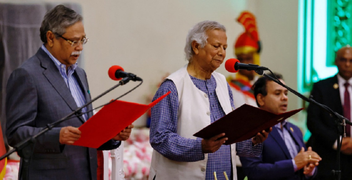 अन्तर्राष्ट्रिय सञ्चारमाध्यमका अनुसार बंगलादेशको राजधानी ढाकास्थित राष्ट्रपति कार्यालय बंगभवनमा बिहीबार युनुससँगै अन्तरिम सरकारका सदस्यहरूले पनि शपथ खाएका छन्।