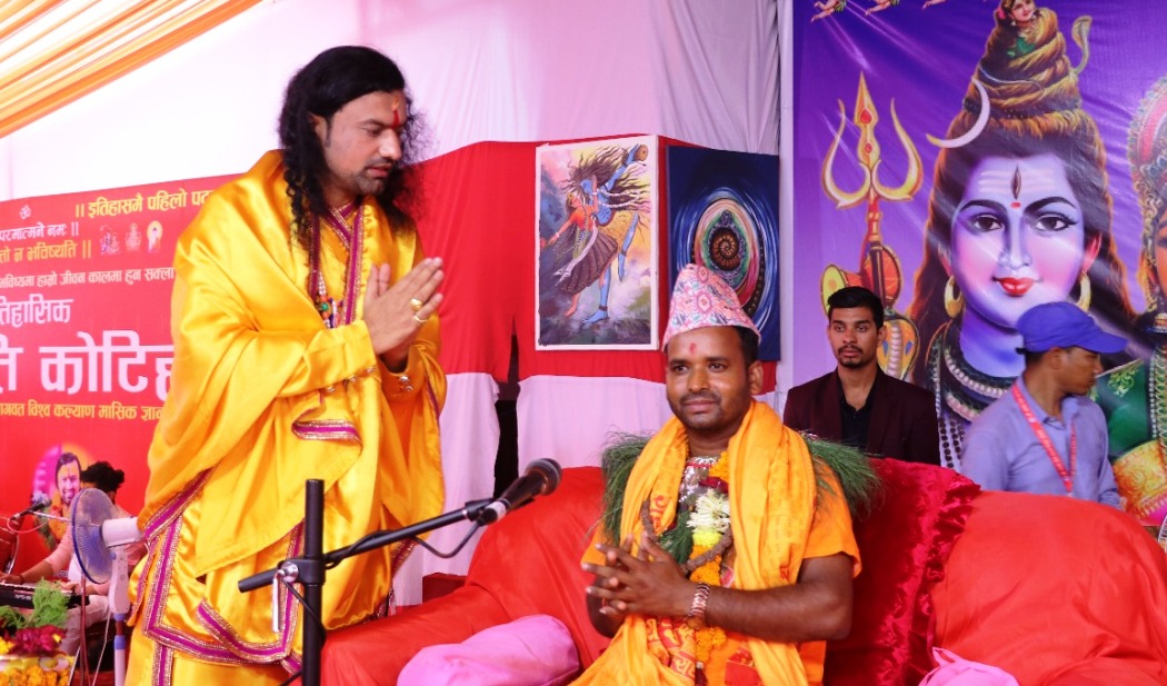 काठमाडाैं । मानव सेवा फाउण्डेशनले पशुपति परिसरमा आयोजना गरेको कोटिहोम महायज्ञमा आचार्य कृष्ण दमाइले प्रवचन दिएका छन् । संस्कृतमा आचार्य (स्नातकोत्तर) गरेकाे बैतडीका दमाइले आज प्रवचन दिएका हुन् ।