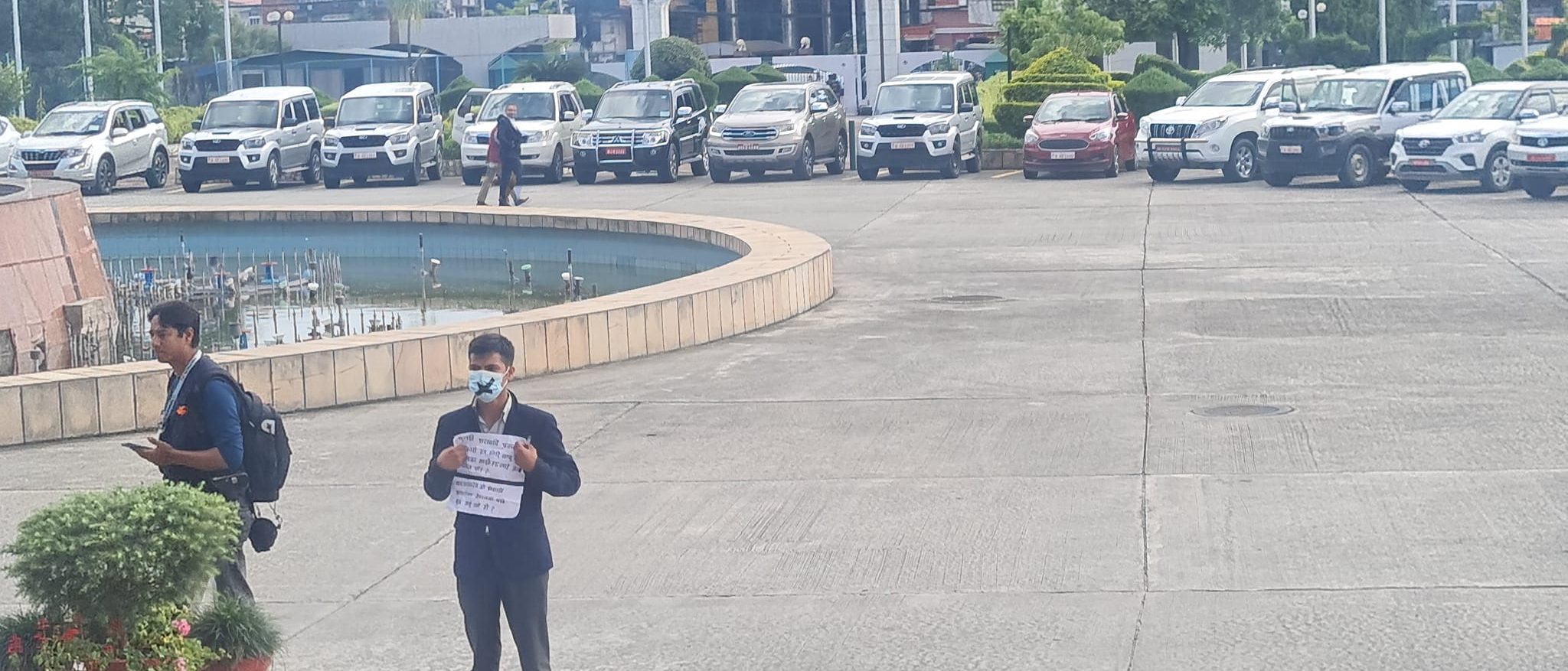 बुधबार संसद् चलिरहेको बेला बाहिर उनी मुखमा कालो टेप टाँसी र हातमा भ्रष्टाचार विरोधी नारा लेखिएको प्लेकार्ड लिएर उभिएका थिए ।उनलाई प्रहरीले तत्कालै नियन्त्रणमा लिएको छ।