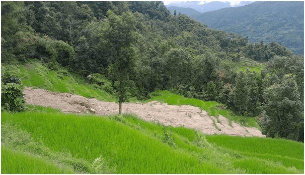 खोटाङ । पहिरोले धानबालीसहित खेत बगाएपछि दिक्तेल रुपाकोट मझुवागढी नगरपालिका–४ खाल्लेका कृषक चिन्तित भएका छन् । गत साउन १६ र १७ गतेको वर्षापछि पहिरोले खाल्लेमा धानबालीसहित खेत बगाएको थियो ।