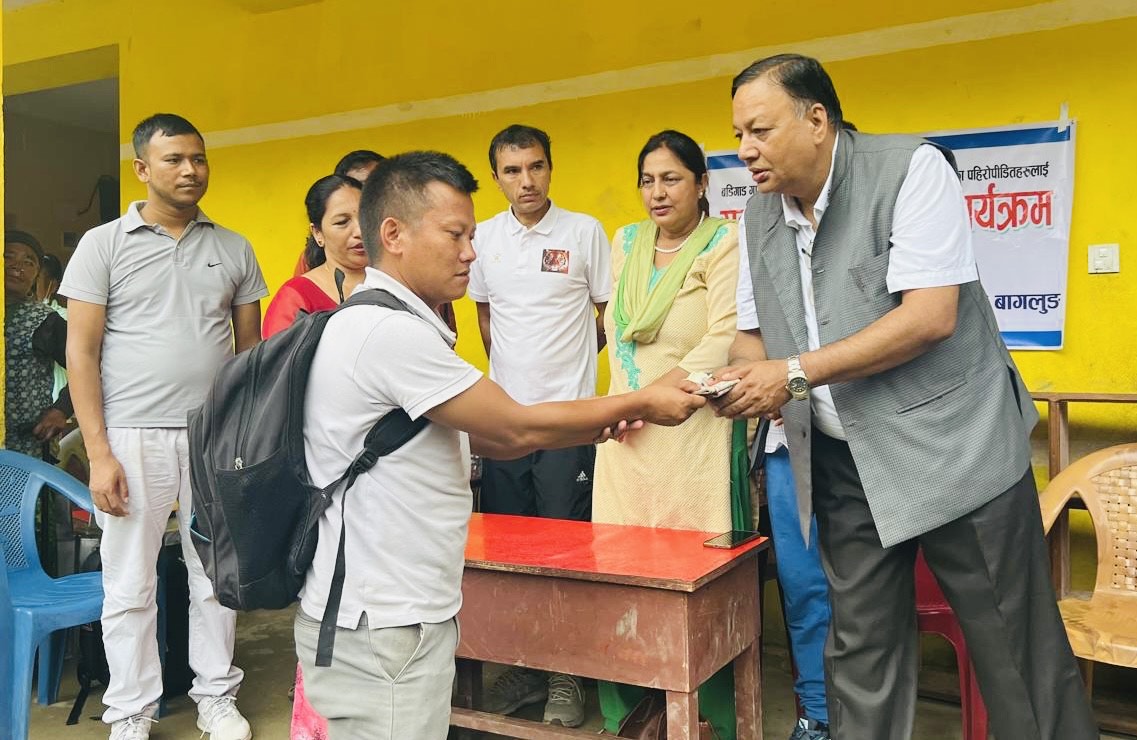 माओवादी केन्द्रका केन्द्रीय सचिव एवं बागलुङ–२ बाट निर्वाचित प्रतिनिधिसभा सदस्य देवेन्द्र पौडेललगायतको उपस्थितिमा पहिरो प्रभावितलाई राहत रकम वितरण गरिएको हो ।