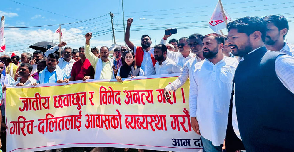 सर्लाही । आम जनता पार्टी (आजपा) निकटको आम दलित मोर्चाले दलित समुदायको आवास निर्माणको रकम फ्रिज गराउँनेलाई कारवाही गर्नुपर्ने माग सरकारसंग गरेको छ । आम दलित मोर्चाका केन्द्रीय अध्यक्ष ठगा दासको नेतृत्वमा बिभिन्न माग गर्दै मोर्चाले जिल्ला प्रशासन कार्यालय सर्लाहीलाई ध्यानाकर्षण पत्र बुझाउदै यस्तो माग गरेको हो ।