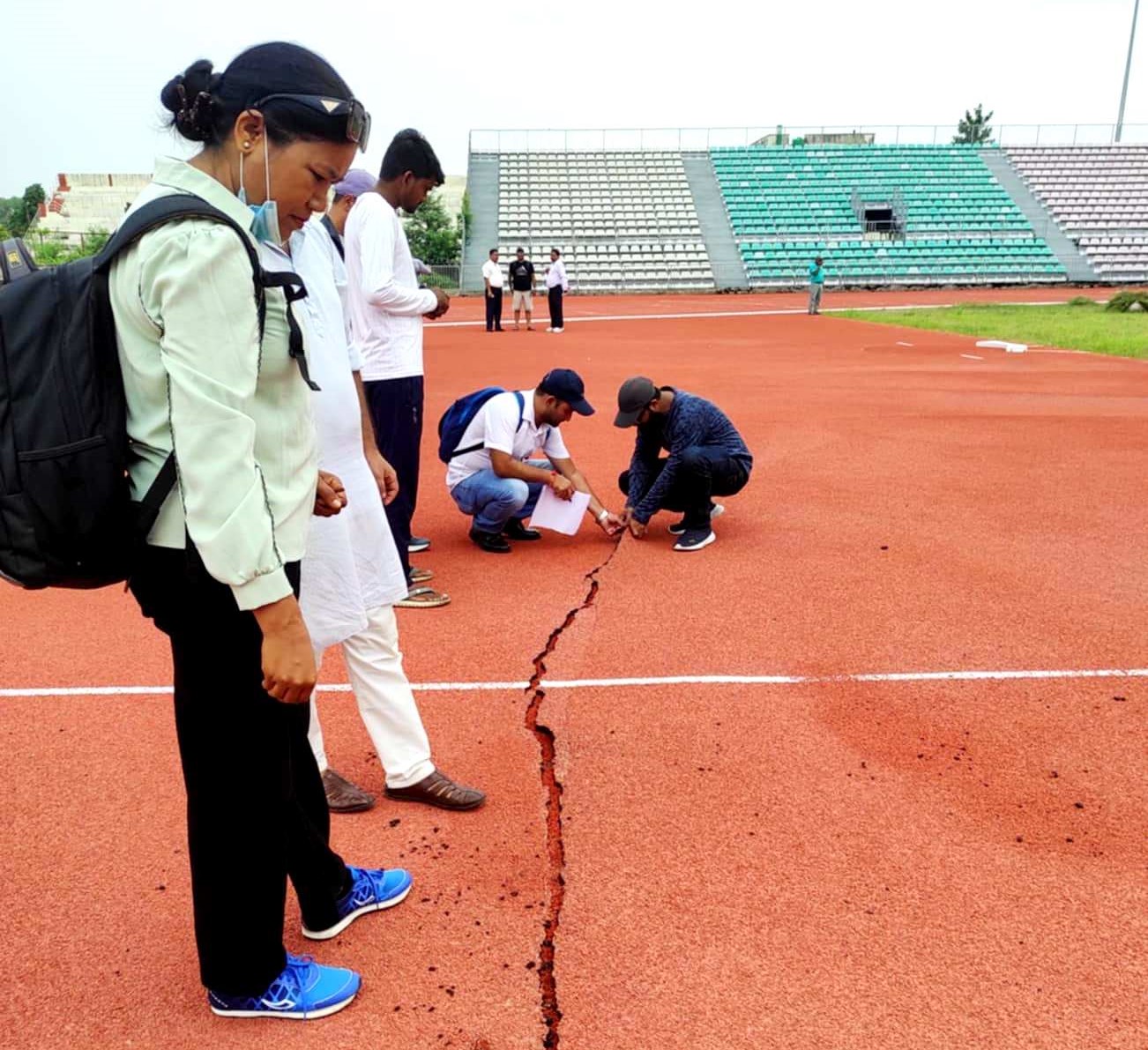 बाँके । नेपालगन्ज रङ्गशालामा निर्माण गरिएको ‘सेन्थेटिक ट्रयाक’ मा क्रयाक भएको विषयमा अध्ययन गर्न गठन गरिएको उपसमितिले रङ्गशालामा पुगेर छानबिन गरिरहेको छ । निर्माण पुरा भएको महिना दिन बित्न नपाउँदै सेन्थेटिक ट्रयाक उप्किएको जानकारी सार्वजनिक भएपछि राष्ट्रिय खेलकुद परिषद्ले (राखेप) का सदस्य ले बहादुर क्षेत्रीको संयोजकत्वमा गठन गरेको तीन सदस्यीय अध्ययन उपसमितिले रङ्गशालामै पुगेर छानबिन गरिरहेको हो ।