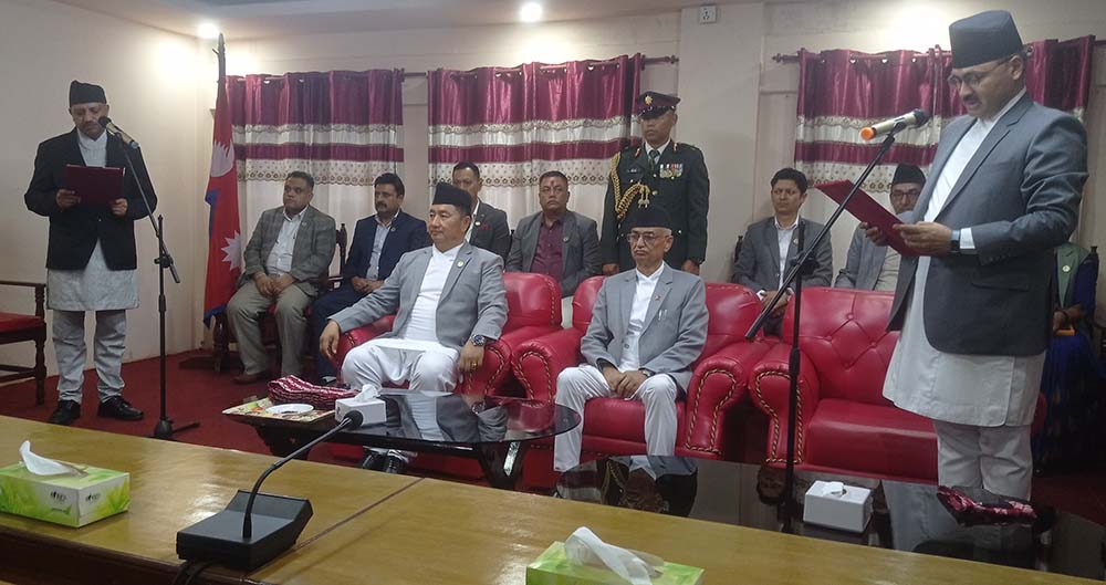 बागमती प्रदेशका प्रदेश प्रमुख दीपकप्रसाद देवकोटाको उपस्थितिमा पाटन उच्च अदालतका मुख्य न्यायाधीश नृपध्वज निरौलाले प्रदेश प्रमुखको कार्यालय, हेटौँडामा बिहीबार आयोजित कार्यक्रममा मुख्य न्यायाधिवक्ता काफ्लेलाई पद तथा गोपनीयताको शपथ ग्रहण गराए ।