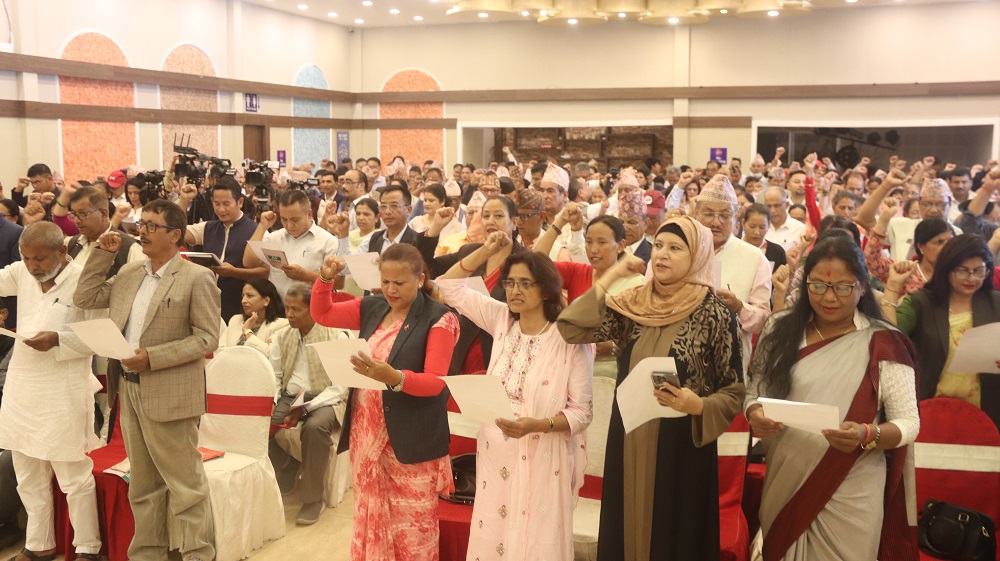 काठमाडौँ । नेपाल कम्युनिष्ट पार्टी (एकीकृत समाजवादी) को केन्द्रीय कमिटीको बैठकमा दुई सय ५१ केन्द्रीय सदस्यको शपथ ग्रहण गराइएको छ । बैठकमा पार्टी अध्यक्ष एवं पूर्वप्रधानमन्त्री माधवकुमार नेपालले मनोनीत ती सदस्यलाई शपथ गराएको हो ।