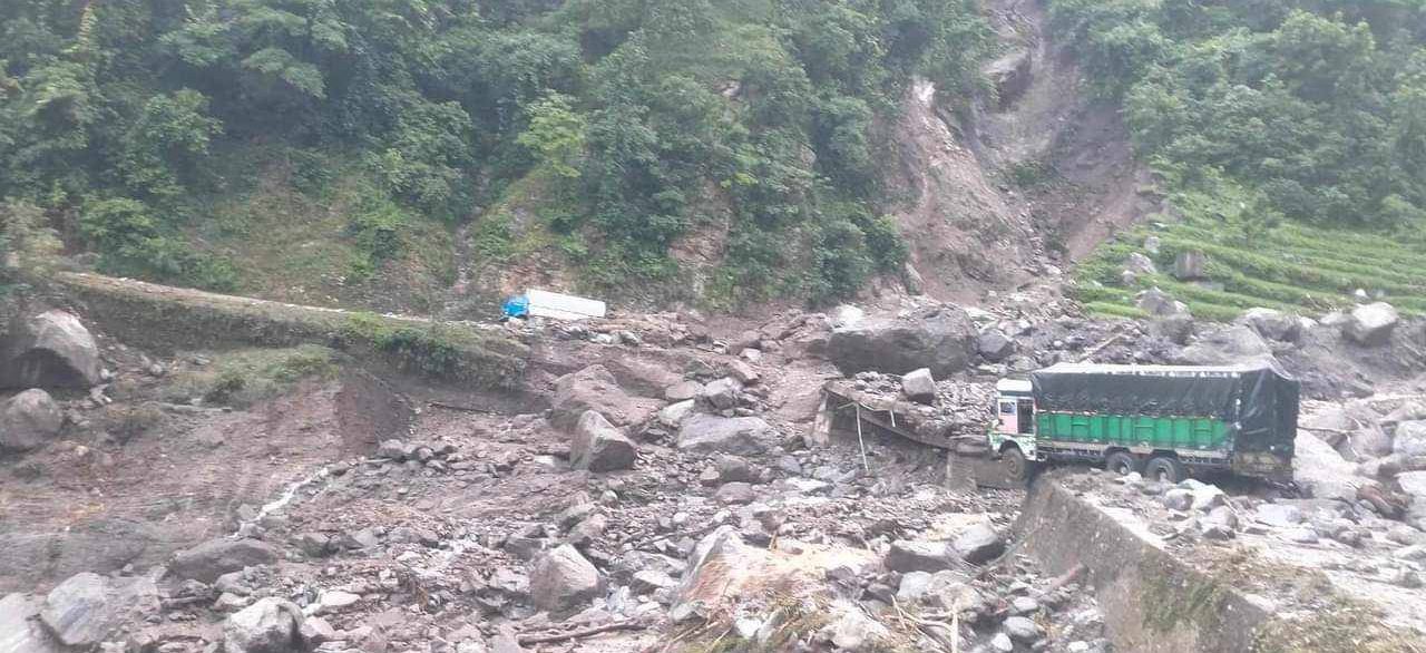 त्यस्तै, कर्णाली करिडोरको फुगाड जलविद्युत् आयोजनाको सुरुङ खनेको रेंगिल भिरनजिकै माथिबाट खसेको लेदोसहित पहिरो खसेको कर्णाली करिडोर पनि अवरुद्ध रहेको सूचना अधिकारी केसीले जानकारी दिए ।