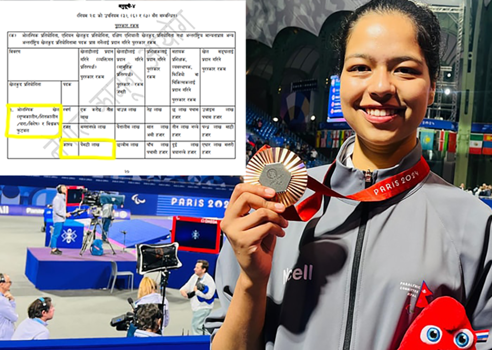 काठमाडौं । पेरिसमा जारी पारालिम्पिक्समा नेपाललाई ऐतिहासिक काश्य पदक जिताएकी तेक्वान्दोकी खेलाडी पलेशा गोवर्धनले ६५ लाख रुपैयाँ पुरस्कार पाउने भएकी छन् ।