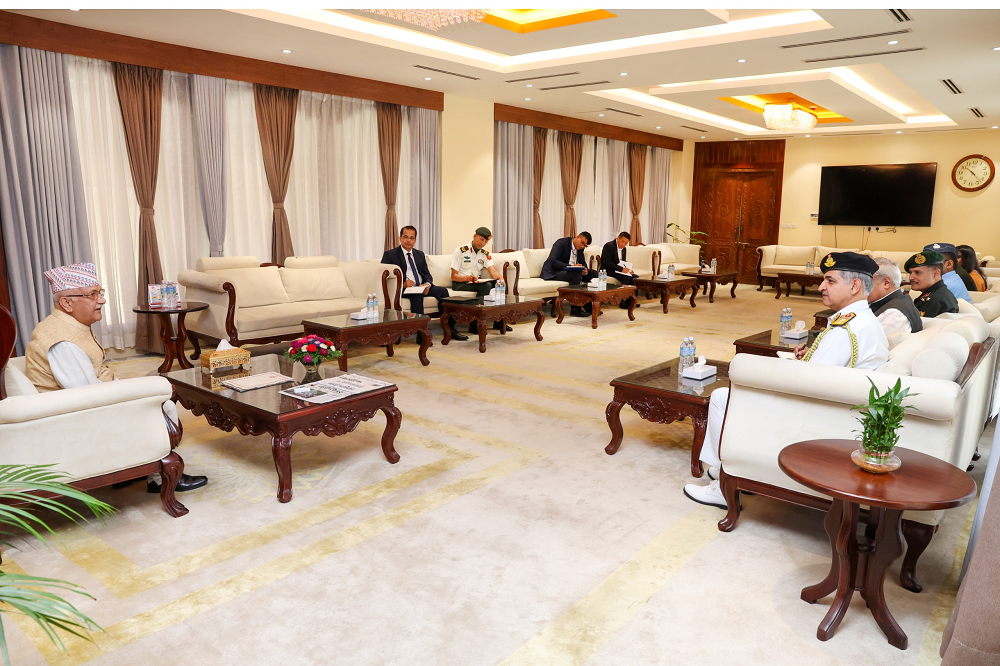 प्रधानमन्त्री निवास, बालुवाटारमा भएको भेटमा प्रधानमन्त्री ओलीले उक्त कलेजले रक्षा मामिलामा गर्दै आएको प्राज्ञिक योगदानको प्रशंसा गर्दै दक्षिण एसियाली राष्ट्रहरुको शान्ति र समृद्धिका लागि साझा प्रयास हुनुपर्नेमा जोड दिए । उनले गौतम बुद्ध, महात्मा गान्धीजस्ता व्यक्तित्वको जन्म भएको यस क्षेत्रमा हिंसा र विवाद उत्पन्न हुनु यहाँको संस्कृति र सभ्यताविपरीतका विषय हुने बताए ।