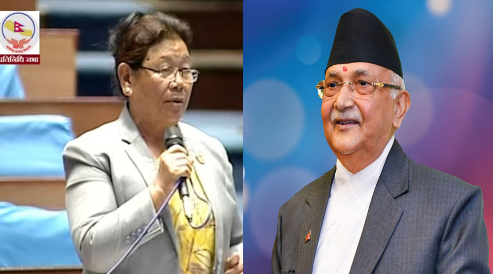 प्रधानमन्त्री ओलीले प्रतिनिधिसभा नियमावली २०७९ को नियम २५७ मा व्यवस्था गरिएको महिला समन्वय समिति बनाउनेबारे ध्यान नदिएको तर, बाहिर भने महिला प्रधानमन्त्री बनाउँछु भन्दै हिँडेको भन्दै प्रश्न गरिन्, “प्रधानमन्त्रीज्यू कहिले महिला प्रधानमन्त्री बनाउँदै हुनुहुन्छ ? संसद्लाई जानकारी दिनुहोला । नियमावलीमा व्यवस्था गरिएको समिति बनाउन वातावरणचाहिँ नबनाउने तर, अर्कोतिर कुनै कार्यक्रममा भने महिला प्रधानमन्त्री बनाउँछु भन्नु कति जायज हुन्छ ?”