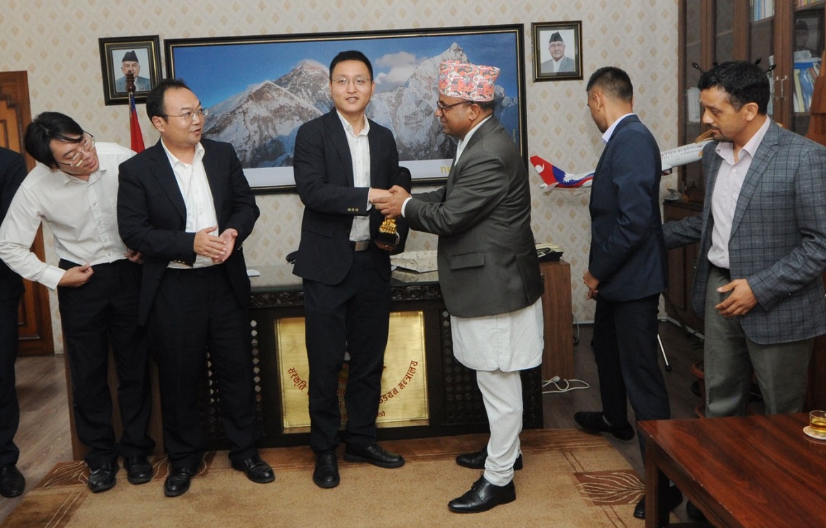 काठमाडौं । संस्कृति,पर्यटन तथा नागरिक उड्डयनमन्त्री बद्री पाण्डे र चाइना साउदर्न एयरलाइन्सका प्रतिनिधिबीच भैरहवा र पोखरा अन्तर्राष्ट्रिय विमानस्थलमा उडान भर्नेबारे कुरा भएको छ। विहीबार चाइना साउदर्न एयरलाइन्सका प्रतिनिधिले मन्त्री पाण्डेलाई भेटेर पोखरा र भैरहवामा उडान भर्न आफूहरू उत्साहित रहेको बताएका हुन् ।