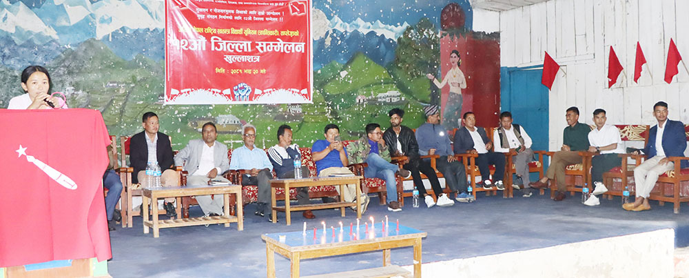 नेकपा (माओवादी केन्द्र) का केन्द्रीय सदस्य तथा ताप्लेजुङ इन्चार्ज खेलप्रसाद बुढाक्षेत्री (पराग) ले जिल्ला सम्मेलनको उद्घाटन गरे । सम्मेलनमार्फत नयाँ जिल्ला समिति चयन गरिने अखिल क्रान्तिकारी जिल्ला सम्मेलन आयोजक समितिका संयोजक झरेन्द्र तिवारीले जानकारी दिए ।