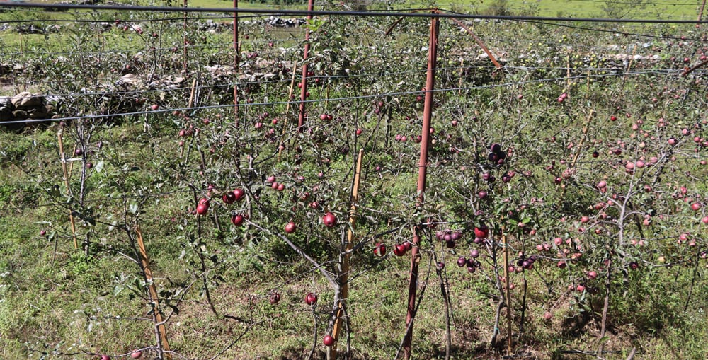 किसान चिरनकुमार घर्तीले गाउँमा खाली रहेको जग्गालाई सदुपयोग गरी व्यावसायिक स्याउखेती थालेको बताए । हालसम्म व्यक्तिगत रुपमा रु २० लाख र कृषि ज्ञान केन्द्रको अनुदानसहित रु २७ लाख लगानी भएको उनले जानकारी दिए ।