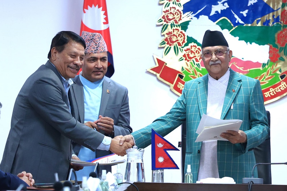 प्रधानमन्त्री तथा मन्त्रिपरिषद्को कार्यालय, सिंहदरबारमा आज आयोजित कार्यक्रममा उक्त सम्झौतामा हस्ताक्षर र सम्झौताको प्रति आदानप्रदान गरिएको छ । यसैगरी प्रधानमन्त्री र नेपाल सरकारका मुख्यसचिवबीच कार्यसम्पादन सम्झौता भएको छ ।