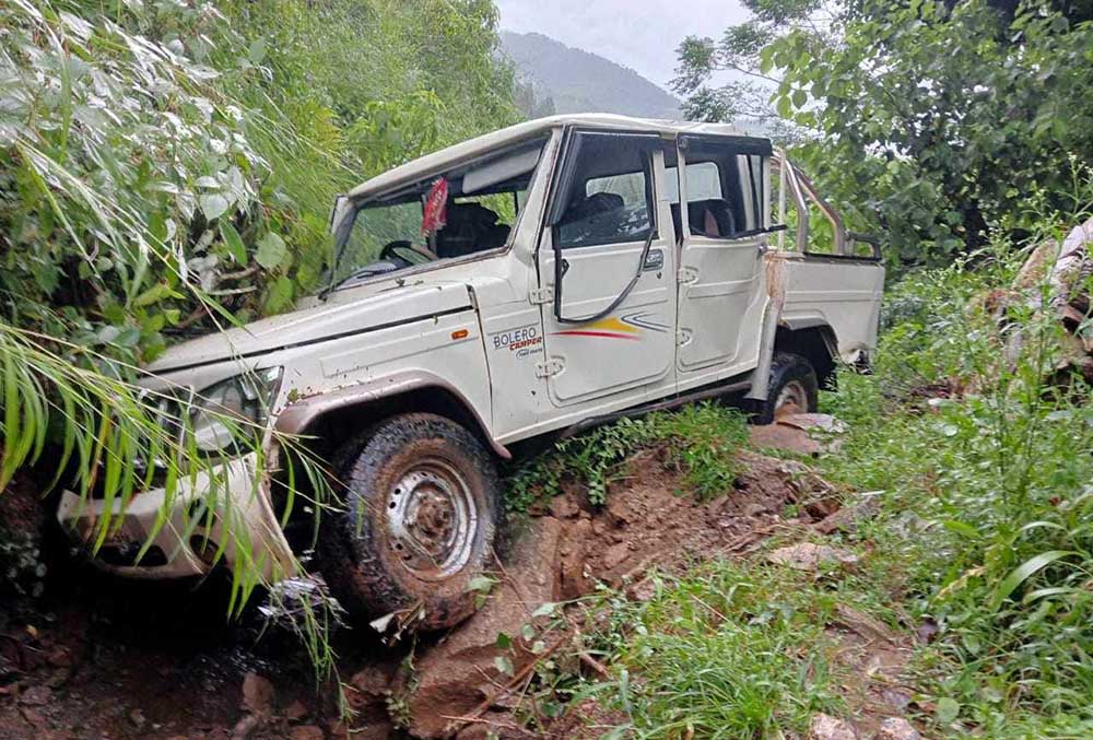 जिप श्रीनगरमा साइड हेरेर फर्केने क्रममा अनियन्त्रित भएर सडकबाट खोल्सामा पुगेको छ । घाइतेको जिल्ला अस्पताल सल्यानमा उपचार भइरहेको प्रहरी सहायक निरीक्षक गोबिन्द डाँगीले जानकारी दिए ।