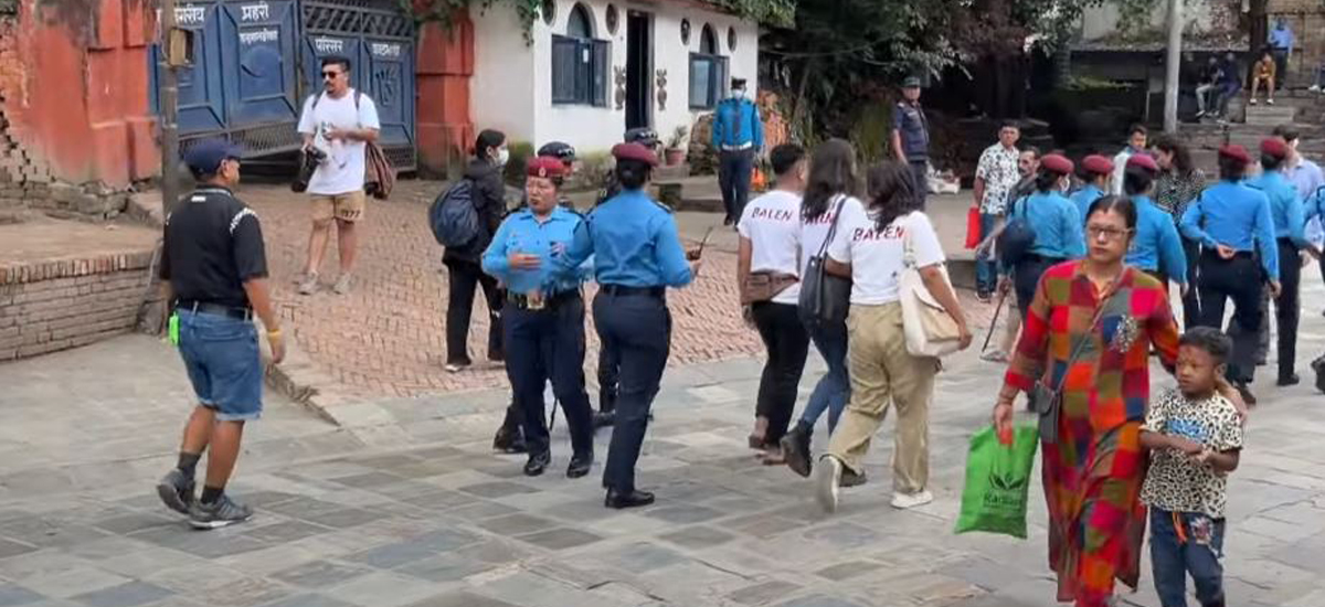 इन्द्रजात्रामा अवसरमा काठमाडौं महानगरपालिकाका मेयर बालेन शाहको फोटो अंकित टिसर्ट लगाएर हुलहुज्जत गरेको भन्दै वसन्तपुर क्षेत्र पुगेकाहरूलाई प्रहरीले नियन्त्रणमा लिएको हो ।