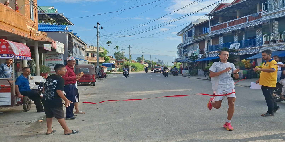 म्याराथुनमा बिर्तामोडका १५ बर्षिय धावक शिव कार्की पहिलो भएका छन् । सात किलोमिटर दुरी कार्कीले १९ मिनेटमा पूरा गर्दै पहिलो स्थान हासिल गरे । कार्कीले ५१ हजार रुपियाँ पुरस्कार पाए । यस्तै सुखदेव टुडु दोस्रो, सुरज थापाले तेस्रो र सुवास दनुवार शान्तना हुँदै क्रमश: ४१००, ३१०० र २१०० रुपियाँ पुरस्कार पाए ।