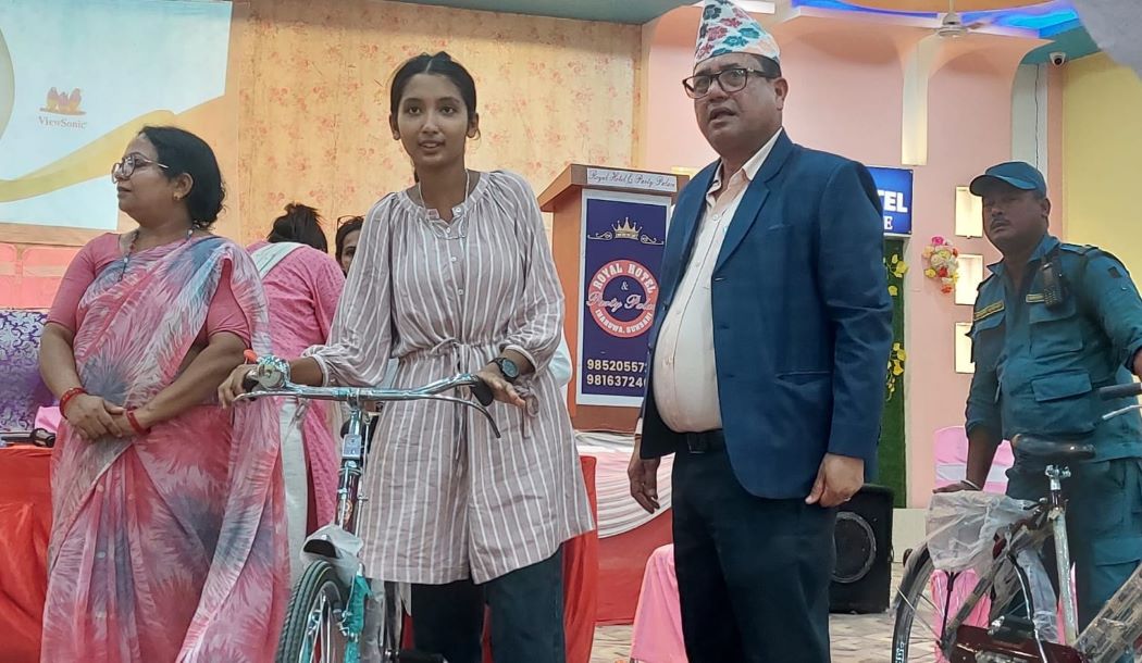 साइकल पाएपछि विधार्थी खुसी भएका छन् । साइकल वितरण कार्यक्रममा नगर उपप्रमुख विनितकुमारी मेहता समेतको उपस्थिति थियो ।