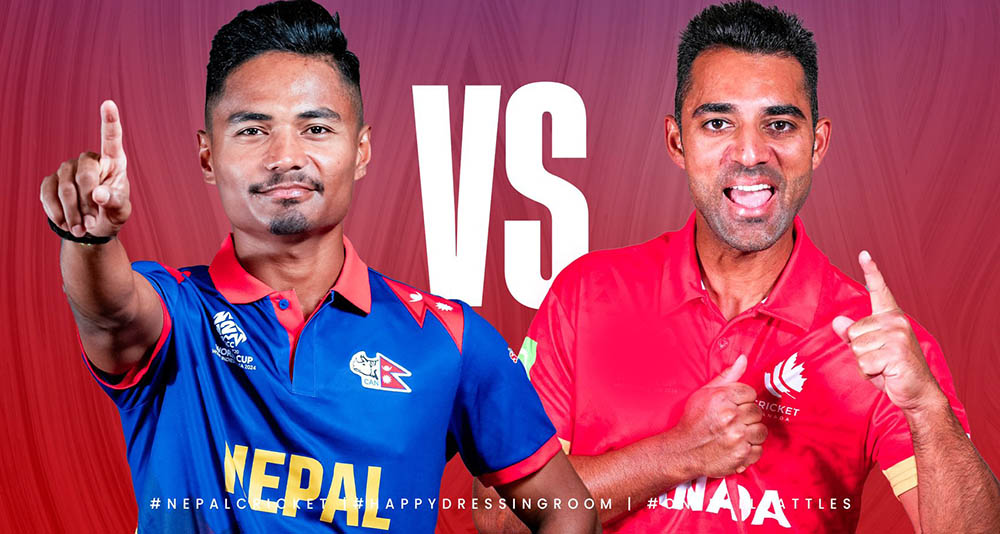 काठमाडौँ । नेपालले आइसीसी विश्वकप लिग- २ अन्तर्गत आज क्यानडाविरुद्ध खेल्दै छ । यो खेल नेपाली समय अनुसार राति ८: ४५ बजेदेखि ओन्टारियोस्थित किंग सिटी स्टेडियममा हुदै छ ।