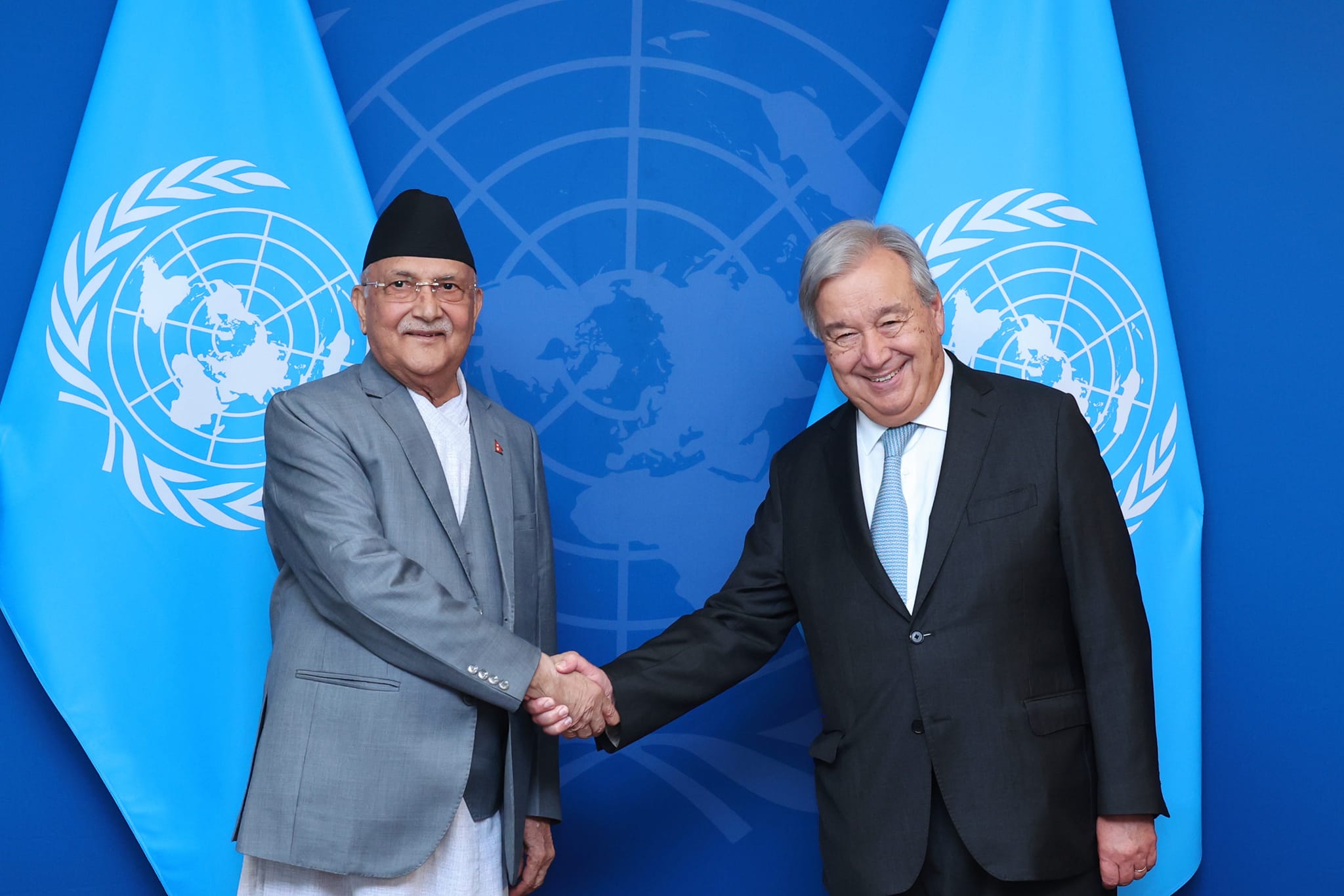 अमेरिकाको न्युयोर्कस्थित राष्ट्रसङ्घको मुख्यालायमा भएको भेटवार्तामा महासचिव गुटेरसले नेपालमा हिमालहरू पग्लिने र त्यसबाट हुने क्षतिपूर्तिका लागि अन्तर्राष्ट्रिय समुदायसमक्ष आफूले सक्दो प्रयास गर्ने प्रतिबद्धता व्यक्त गरे । उनले ग्रिनहाउस ग्यास उत्सर्जनमा भारी कटौती र कमजोरीहरू सम्बोधनसहित नेपालजस्ता पर्वतीय देशहरूको जलवायु वित्त पर्याप्त हुनुपर्नेमा जोड दिएका थिए ।