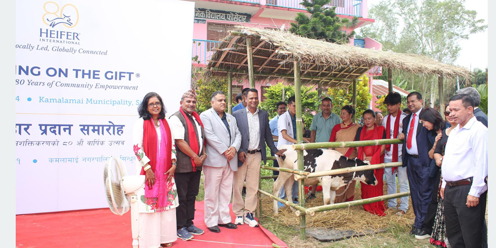 सिन्धुली। करिब तीन वर्षअघि कोरियाले नेपाललाई दिएका उन्नत जातका गाईबाट जन्मिएका बाछी स्थानीयलाई उपहारका रूपमा प्रदान गरिएको छ । शनिबार सिन्धुलीको कमलामाई नगरपालिकामा आफ्नो ८०औँ वार्षिकोत्सव मनाउँदै हेफर इन्टरनेशनलले उपहार हस्तान्तरण कार्यक्रम (पासिङ अन द गिफ्ट) सम्पन्न गरेको हो ।