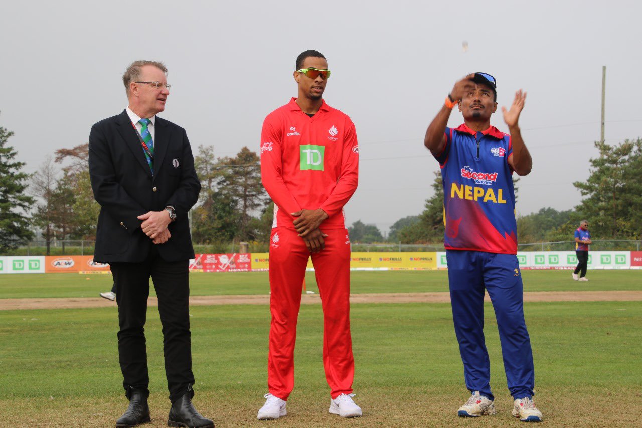 नेपालका कप्तान रोहित पौडेलले टस जितेर पहिला ब्याटिंग गर्ने निर्णय गरेका हुन् । योसँगै घरेलु टोली क्यानडाले पहिला बलिङ गर्ने भएको छ । यस सिरिजमा लगातार दुई खेलमा हार बेहोरेर नेपाल दबाबमा रहेको छ । नेपालले पहिलो खेलमा क्यानडासँग १०३ रनले हार बेहोरेको थियो भने दोस्रो खेलमा ओमानसँग एक विकेटले हार बेहोरेको थियो ।