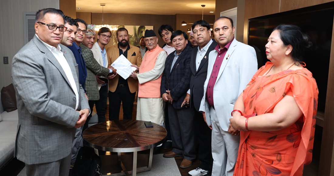 प्रवासी नेपाली समुदायका प्रतिनिधिले प्रधानमन्त्री ओलीलाई राष्ट्रसङ्घको सहभागिता र अमेरिका भ्रमण सफलताको कामना गर्दै नेपालको समृद्धि र विकासका लागि प्रवासमा रहेका नेपालीले पनि भूमिका खेल्ने जनाएका थिए । उनीहरुले दोहोरो नागरिकताका समस्या र नेपालको संविधान संशोधनका सवालबारे पनि विचारविमर्श गरेका थिए।