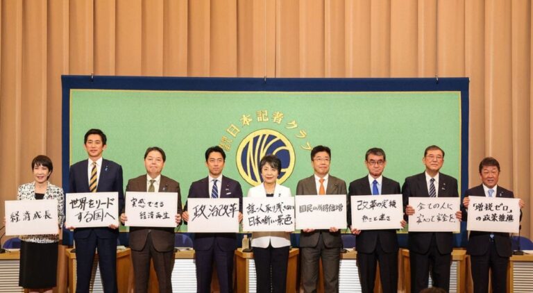 पूर्व रक्षामन्त्री शिगेरु इशिबा, लोकप्रिय पूर्वप्रधानमन्त्रीका छोरा ४३ वर्षीय शिन्जिरो कोइजुमी र महिला उम्मेदवार साना ताकाइची चुनावी प्रतिस्पर्धामा अगाडि रहेका छन् ।