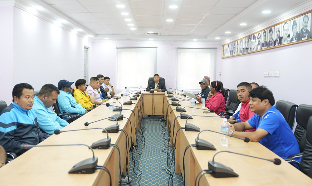 काठमाडौँ । राष्ट्रिय खेलकुद परिषद् (राखेप) का सदस्य–सचिव टंकलाल घिसिङले विभिन्न खेलका मुख्य प्रशिक्षकसँग प्रशिक्षण, भावी योजना, समस्या लगायतका विषयमा चासो राख्दै छलफल गरेका छन् ।