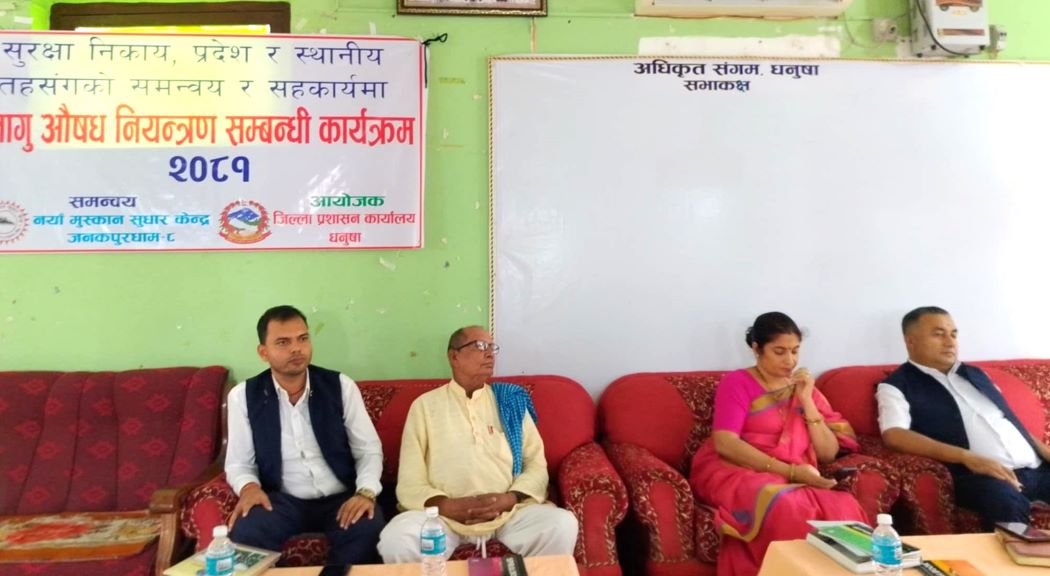 लागुऔषधको ओसारपसार नियन्त्रणका लागि स्थानीय प्रशासन गम्भीर भएर कामकाज गर्दैआएको र अहिले यसप्रकारको गतिविधिमा कमी आएको बताए। कार्यक्रममा धनुषाका प्रहरी प्रमुख एवम प्रहरी उपरीक्षक भुवनेश्वर तिवारीले लागुऔषधको सेवनबाट हुने नोक्सानी र यसको नियन्त्रणका लागि प्रहरीबाट भएको कामकाजको विषयमा प्रस्तुती गरेको थिए ।