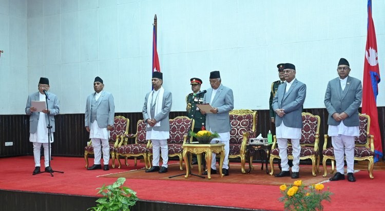 काठमाडौँ। राष्ट्रपति रामचन्द्र पौडेलले नवनियुक्त प्रधानन्यायाधीश प्रकाशमान सिंह राउतलाई पद तथा गोपनीयताको शपथ गराएको छन् । राष्ट्रपति भवन शीतल निवासमा आइतबार आयोजित कार्यक्रममा प्रधानन्यायाधीश राउतले आफ्नो पद तथा गोपनीयताको शपथ लिएको हो ।