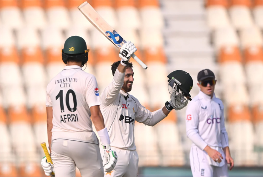 पाकिस्तानका लागि कप्तान शान मसूदले १५१, सलमान अघा १०४ रन र अब्दुल्लाह शफिकले १०२ रन बनाएका थिए । दोस्रो दिन इङल्याण्डले एक विकेट गुमाएर ९६ रन बनाएको छ ।