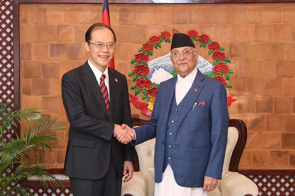 काठमाडौँ । प्रधानमन्त्री केपी शर्मा ओलीसँग नेपालका लागि जापानका राजदूत किकुता युताकाले आज प्रधानमन्त्री निवास, बालुवाटारमा शिष्टाचार भेट गरेका छन् ।