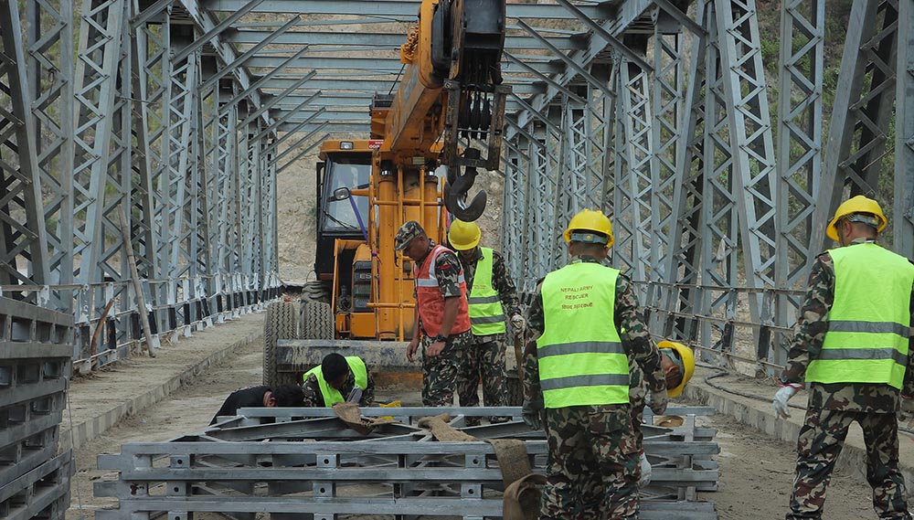 रामेछाप । बाढीले बगाएको सिन्धुली-रामेछाप जोड्ने सुनकोसी नदीमा जडान भएको बेलिव्रिज आजबाट शुभारम्भ हुने भएको छ ।