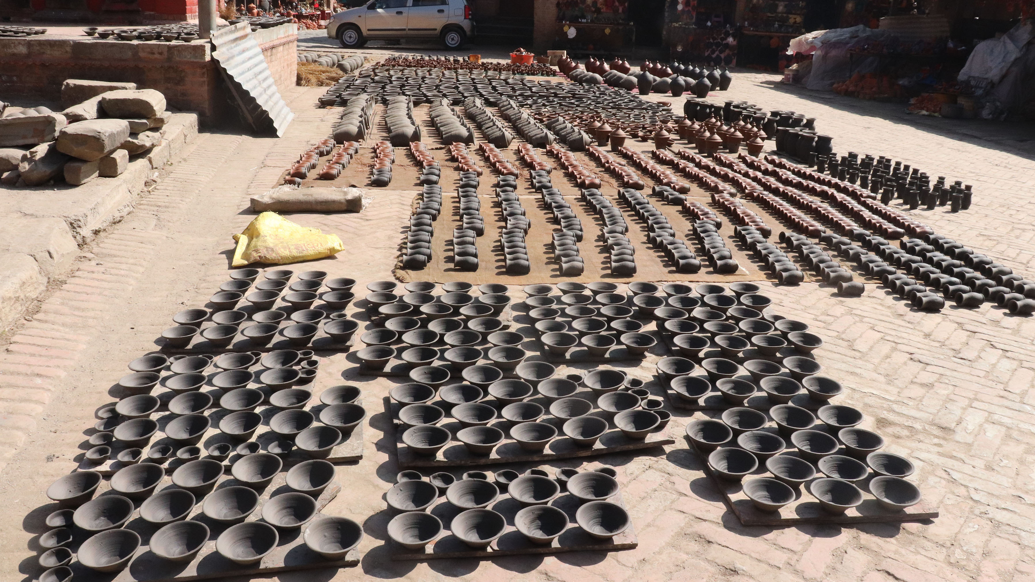 भक्तपुर । भक्तपुरको नगरपालिका–४ स्थित बोलाछेँ तालाक्व (पोट्टरी स्क्वायर)मा पालालगायत माटो भाडा घाममा सुकाइँदै । तस्बिरः रासस