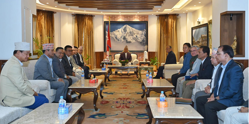 काठमाडौं । प्रमुख प्रतिपक्षी नेकपा माओवादी केन्द्रका अध्यक्ष पुष्पकमल दाहाल ‘प्रचण्ड’ सहित विपक्षी दलका नेताहरूले राष्ट्रपति रामचन्द्र पौडेललाई भेटेर ध्यानाकर्षण गराएका छन् ।