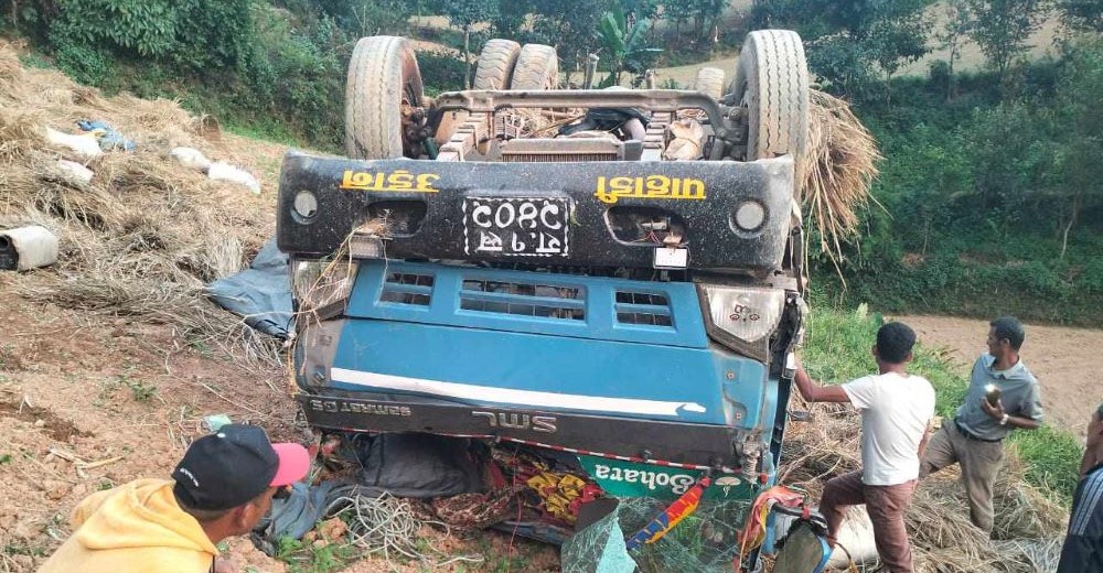 सल्यान । सल्यानमा मिनी ट्रक दुर्घटना हुँदा तीन जनाको मृत्यु भएको छ भने आठ जना घाइते भएका छन् । जिल्लाको कपुरकोट गाउँपालिका ६ सिनबाङ्गको दुबेदेबाट धान र पराल लिएर सिनबाङ्ग जाँदै गरेको मिनी ट्रक सोमबार बेलुकी करिब ६ बजेतिर दुर्घटनामा तीन जनाको मृत्यु भएको हो ।