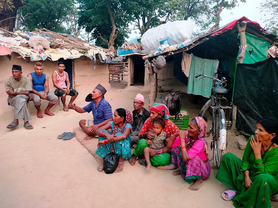 सात वर्ष पहिले दातृ निकायले दिएका त्रिपाल ठाउँठाउँमा च्यातिँदा वर्षात्को पानी त चुहिन्छ नै । हिउँदमा शीतका थोपा झुपडी भित्रै खस्छ । ‘मजदुरी नगरे चुल्होमा आगो बल्दैन’, अमृता साउदले भनिन्, ‘मजदुरी पाउन कठिन छ, पाए पनि थोरै ज्यालामा काम गर्नुपर्छ, अरुसँग मागेर ल्याएका लुगाफाटो लगाएर चाडपर्व मनाउनु परेको छ ।’