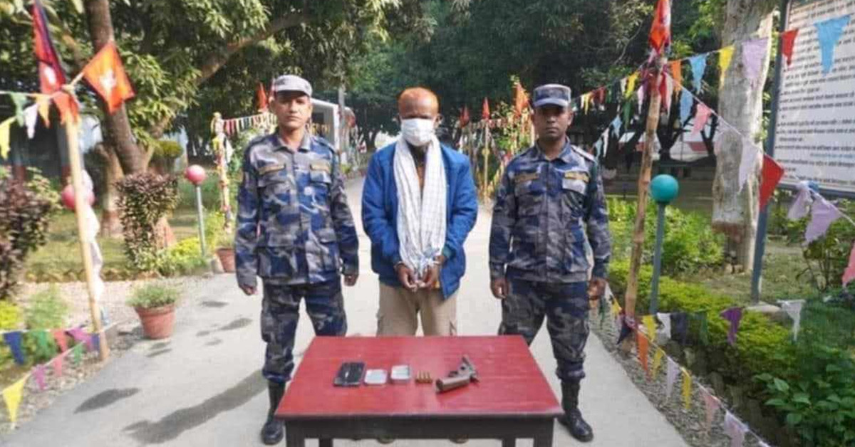 नेपाल–भारत सीमा क्षेत्रमा अवस्थित ब्रह्मपुर गाउँको छेउमा स्थानीय सञ्जीव सिंहले सञ्चालन गरेका मदिरा पसलमा रहेको शौचालयनजिकै एक थान नलकटुवा पेस्तोल, सोही पेस्तोलमा लाग्ने आठ एमएमको तीन थान गोली, आठ एमएमको एक थान पड्केको गोलीको खोखा, एक थान मोबाइलसहित भारत बिहार समस्तीपुर खैदी– ५ घर भई हाल उक्त मदिरा पसलमा बस्दै आएका ४२ वर्षीय राजेश सिंहलाई पक्राउ गरिएको सशस्त्र प्रहरीका एसपी विक्रम हुमागाईंले जानकारी दिए ।