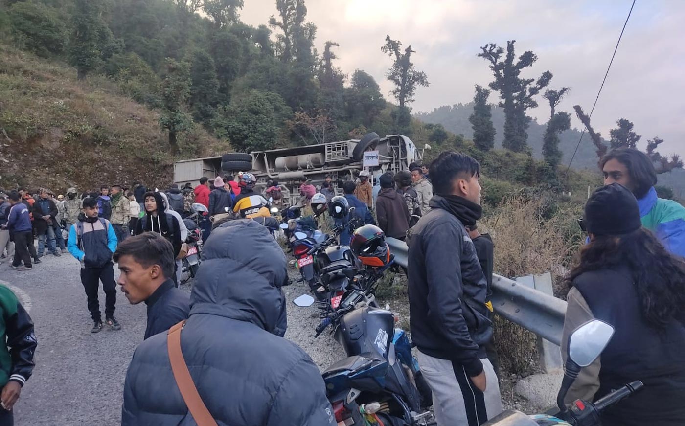 काठमाडौंका लागि छुटेको रात्रिबस दिउँसो ४ः३० बजेको आसपासमा दुर्घटना भएको थियो । घाइतेको उपचारका लागि ढोरपाटन नगरपालिकाको बुर्तिबाङ प्राथमिक स्वास्थ्य केन्द्रमा पठाइएको छ । ब्रेक फेल भएर बस दुर्घटना भएको प्रहरीको प्रारम्भिक अनुमान छ । घटनास्थलमा उद्धारका लागि प्रहरीको टोली पुगेको छ भने घटनाको थप विवरण आउन बाँकी छ ।