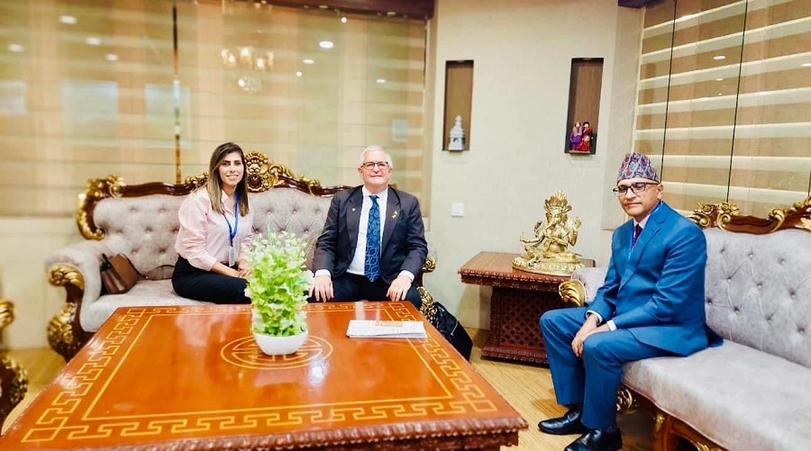 काठमाडौँ। गृहमन्त्री ओमप्रकाश अर्यालसँग शुक्रबार बेलायती राजदूत रोब फेनले मन्त्रालयमा शिष्टाचार भेटवार्ता गरेको छन्। राजदूत फेनसहितको प्रतिनिधि मण...