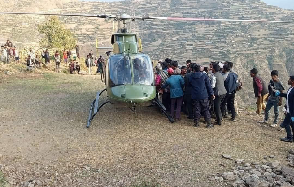 सुर्खेत । कालीकोटको पलाँता गाउँपालिका-३ को राडीनेटामा भएको जिप दुर्घनाका घाइतेलाई नेपाली सेनाको हेलिकप्टरमा सुर्खेत ल्याइएको छ ।