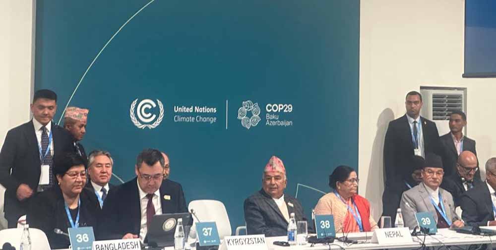 अजरबैजानको बाकु सहरमा यही सोमबारबाट सुरु भएको जलवायु परिवर्तनसम्बन्धी संयुक्त राष्ट्र संघीय संरचना महासन्धि पक्ष राष्ट्रहरुको २९ औँ सम्मेलन (कोप-२९) अन्तर्गत नेपालले आज यहाँ आयोजना गरेको ‘माउण्टेन इन पेरिल, एडेसिङ लस एण्ड डयामेज इन द हिमालय’(पर्वतीय क्षेत्रमा जलवायुजन्य हानि तथा नोक्सानीको सम्बोधन) शीर्षकको उच्चस्तरीय राउण्ड टेबल बैठकलाई सम्बोधन गर्दै उनले सो आह्वान गरेका हुन् ।