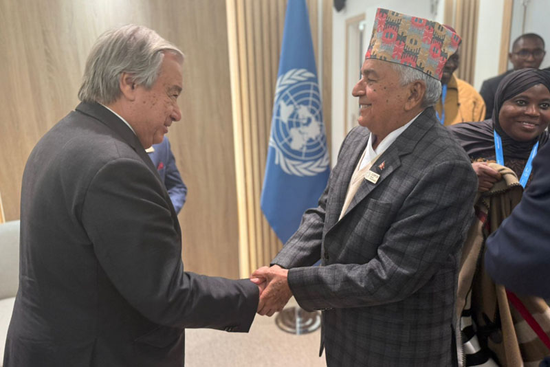 राष्ट्रपति पौडेलले महासचिव गुटेरेसले सन् २०२३ मा नेपाल भ्रमण गर्दा हिमालहरू कसरी पग्लिरहेका छन् भन्ने प्रत्यक्ष अनुभव गरेको भन्दै यस वर्ष थामेमा हिमताल फुटेको तथा काठमाडौं र आसपास क्षेत्रमा बाढीपहिरोले ठूलो विध्वंस गरेको जानकारी दिए । अल्पविकसित देशहरूको विश्व समन्वय परिषद्को अध्यक्ष राष्ट्रका हैसियतमा यी देशहरूको चासो र हकहित रक्षाको लागि नेपाल प्रतिबद्ध रहेको पौडेलको भनाइ थियो ।
