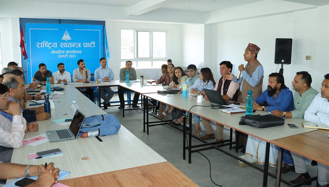 काठमाडौँ । राष्ट्रिय स्वतन्त्र पार्टी (रास्वपा)ले पार्टीको सङ्कटको समयमा पार्टी एकता र आन्तरिक छलफललाई थप व्यवस्थित बनाउने विषयमा छलफल गरेको छ ।